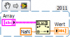 Wie du selbst gemerkt hast, muss ein 2D-Array in LabVIEW zwingend "rechteckig" sein. Das passt aber nicht mit deinen Daten zusammen!