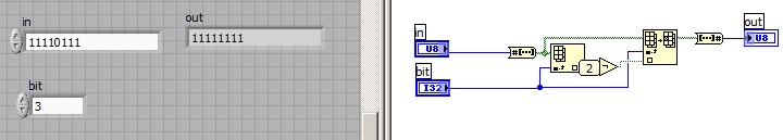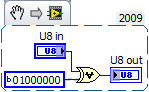 Aber wie übergebe ich jetzt den numerischen Wert "vorzeichenloses Byte" an das Array und wie wandle ich das Array 2 wieder in einen "vorzeichenloses Byte" um? Diese numerischen Anzeigeelemente "U8" würde ich dann als Ein- und Ausgang meines Hilfs-VIs nehmen....
