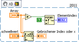 Ich suche nach einer Möglichkeit einen 1D Arry nach werten zu durchsuchen die größer eines bestimmten Schwellenwerts, wird ein Wert gefunden brauche ich den Index dieses wertes. Also praktisch so wie bei dem von LV gelieferten Vi "1D-Array durchsuchen"