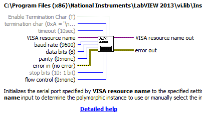 Aber du hast es so programmiert, da du an den Eingängen "Enable Termination Char" und "Termination Char" nichts angeschlossen hast: