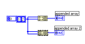 dazu benutzt man die "Build Array" Funktion. Anbei 2 Varianten, Ergebnis einmal ein 2D-Array, einmal ein 1D-Array. Kann man über das rechte-Maustasten-Menü der "Build-Array-Funktion" einstellen.
