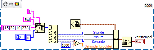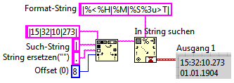 Ein andere Möglichkeit ist die Verwendung der Funktion "In String suchen". Ein kleines Manko ist, daß man das Trennzeichen "|" zwischen Sekunden und Sekundenbruchteilen vorher durch einen Dezimalpunkt ersetzen muss.