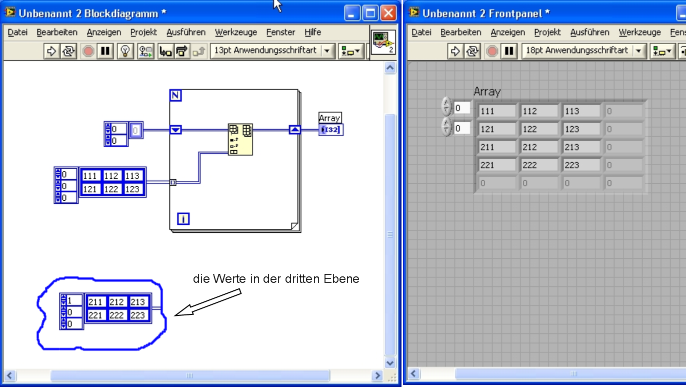 ich habe nach einer Berechnung die Ergebnisse in einem 3D-Array vorliegen,brauche die Werte aber zur weiteren Bearbeitung in einem 2D-Array. Jetzt möchte ich die einzelnen 2D-Arrays, die im 3D-Array als Seiten "hintereinander" liegen, untereinander in ein 2D-Array schreiben.