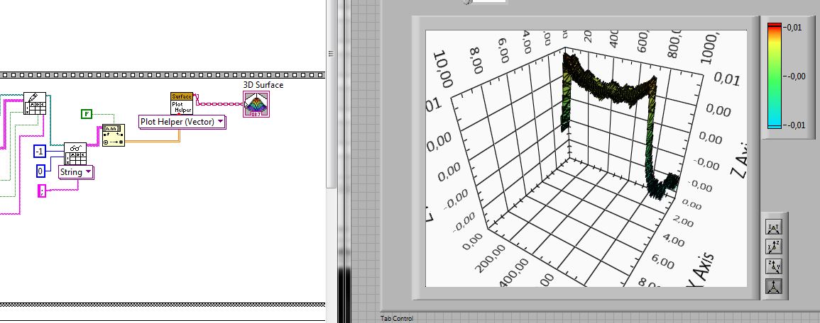 Du lädst deine Daten und schmeißt diese als rechteckige Z-Matrix auf den 3D-PlotHelper. Du gibst keine Daten für X-/Y-Vektor vor, noch machst du sonst irgendwelche Anstalten, Polar-Koordinaten bereitzustellen. Was erwartest du also von deinem VI und deinen Daten?