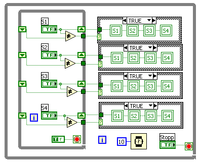 Ich habe 4 Druckschalter und will sie miteinander verknüpfen.