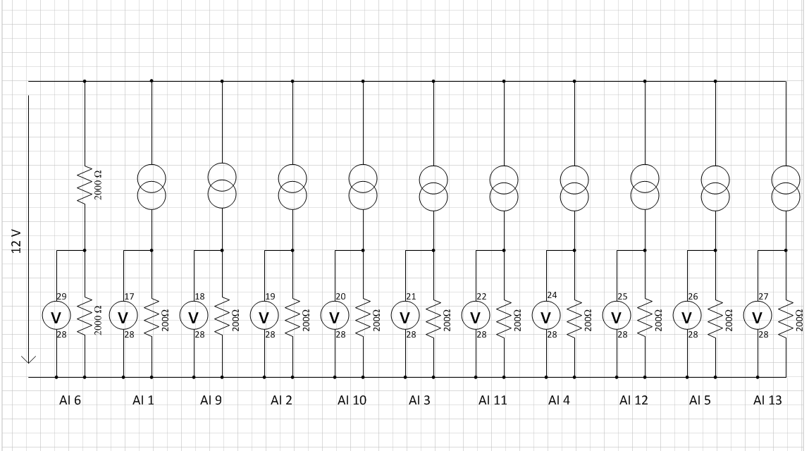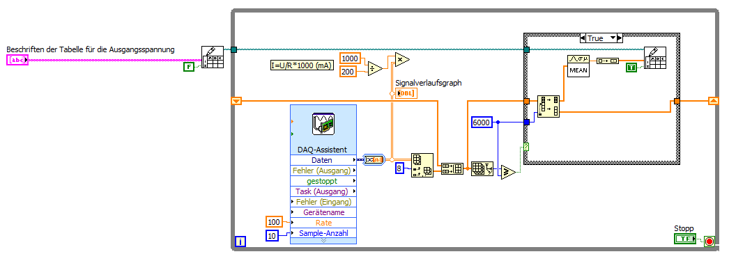 Das mit der Dicke des Drahts ist aber ein Problem, ich will ja explizit nur einen Mittelwert von einem der 11 gemessenen Signale^^ Ich messe ja 10x die Spannung über den Widerständen bei den Hall-Sensoren und einmal die Messspannung. Für jeden Kanal soll einzeln ein Mittelwert gebildet werden am Schluss, ich wollte jetzt mal mit der Messspannung anfangen. So wie du es gemacht hast, wird ja von allen Spannungen gleichzeitg der Mittelwert gebildet oder? o.O