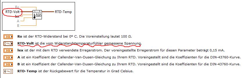 Aber mal eine Frage, wieso steht denn dann in der Hilfe zu LabView dass an dem Eingang RTD-Volt die gemessene Spannung anliegt wenn ich da den Widerstand anschließen soll? o.O