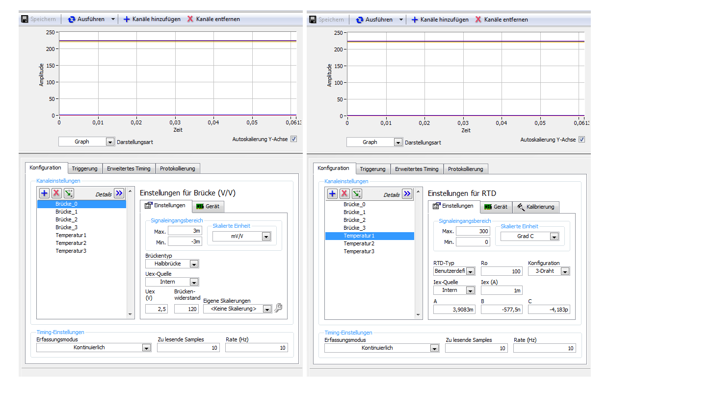 Ich benütze ein NI 9217 (für Temperatur) und ein 9237 (für DMS) in einem cDAQ-9172 die ich einem Task zusammengefasst habe.