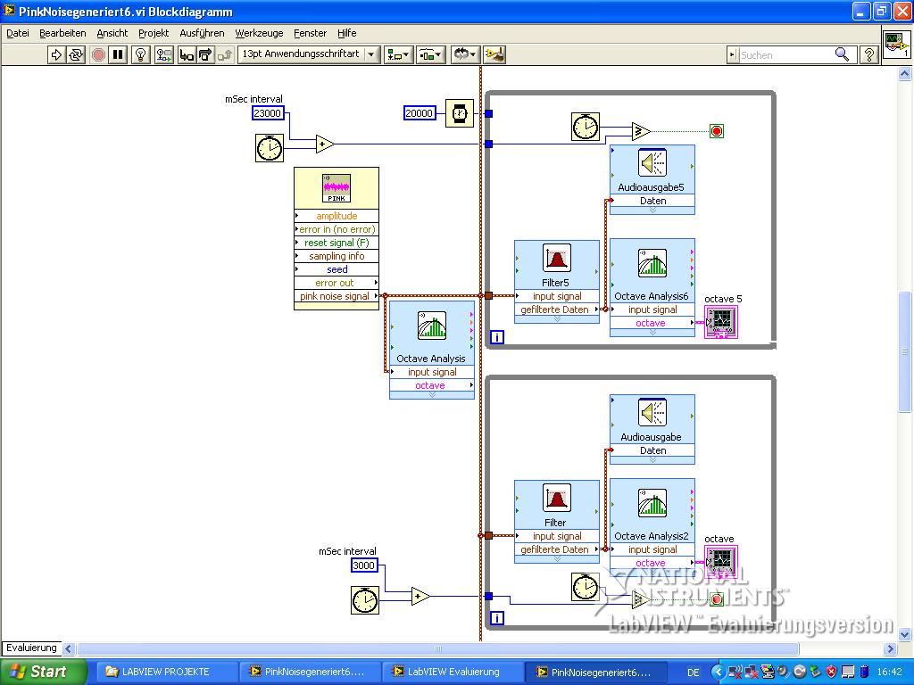 Ich baue mit Labview 2010 und dem Sound&Vibration Toolkit einen Rauschgenerator. Leider schaffe ich es nicht, die Amplitude vom polymorphen VI "Pink Noise" zu ändern. Mit dem Element "Gain" gibt mir das Programm an, dass die Daten nicht dieselben sind: Cluster zu Signalverlauf.