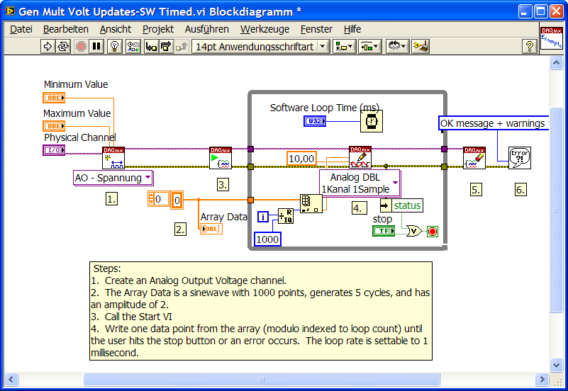 also über 500Hz nicht. Wie ich so mitkriege tendiert ihr beide zu einer Software getimeten Lösung. Soll ich dann meinen fall so ähnlich aufbauen, wie das NI-Beispiel: gen mult volt updates-sw timed?