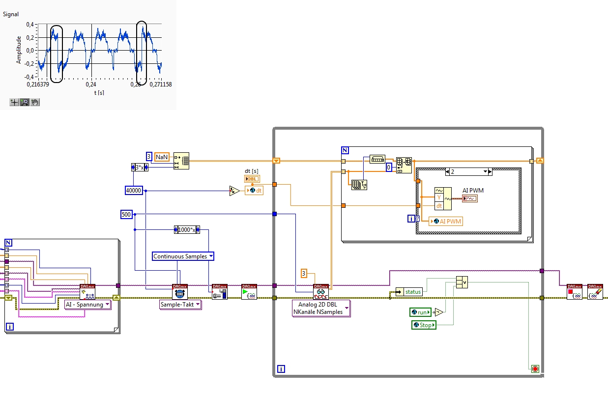 Aber immerhin habe ich jetzt tiefer gehende Kenntnisse was DAQmx und Ringpuffer angeht und erneut die Erkenntnis gewonnen, dass das Niederschreiben der Probleme eine Struktur in die Problematik bringt und zur Lösungsfindung beiträgt....
