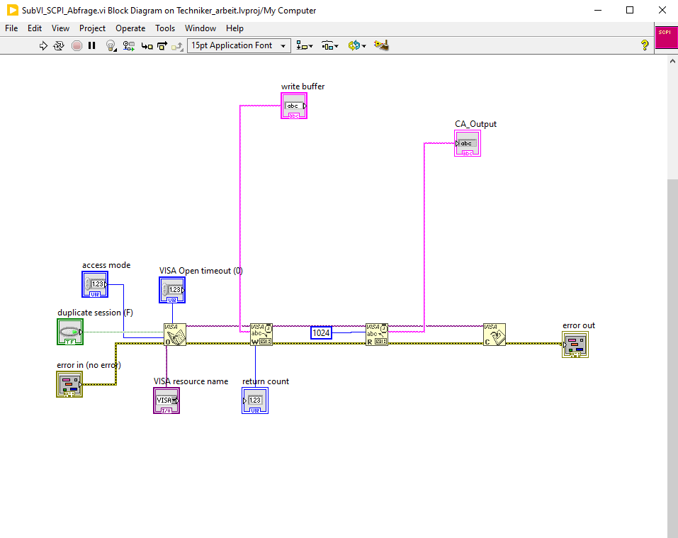 Zitat:Ich habe mir für die Visa-Kommunikation ein SUB-VI erstellt glaube aber es ist blöd gemacht da ich immer wieder VISA open und Close mache hierdurch. Was ist da der Way-to-go?