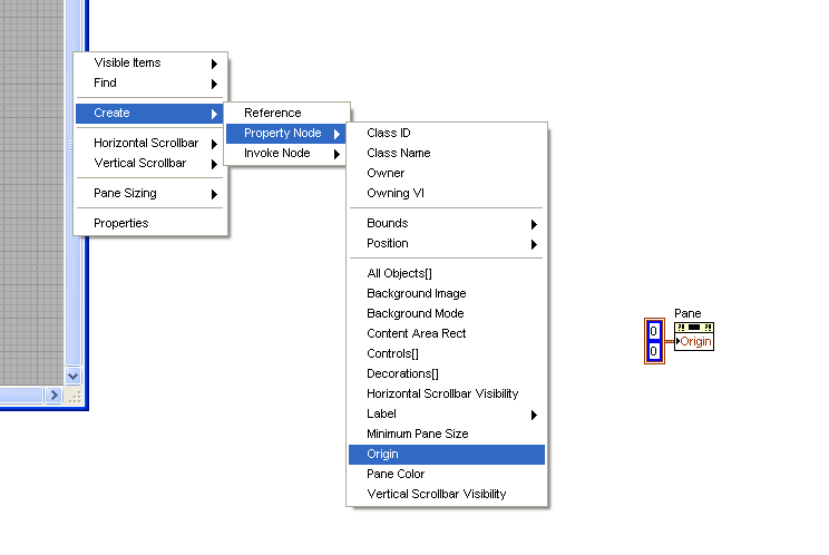 - SubVI: Bei der Initalisierung Pane:Origin auf 0:0 setzen, somit wird beim Aufruf die Origin gleich richtig gesetzt.