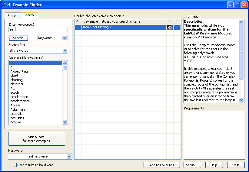 (27.02.2013 13:42 )Y-P schrieb:  Schau Dir mal das Bsp. "Real Root Finding.vi" im Example-Finder an.