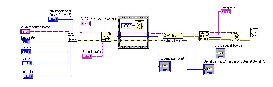 Die einzelnen Beispiele habe ich mir auch angeschaut und auch mit den Basic serial Port Sachen herumgespielt, aber ohne Erfolg. Er bringt ständig einen Fehler beim VISA lesen.