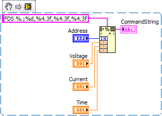 Dann habe ich mir ein kleines SubVi geschrieben, mit dem ich Befehlsstring's zum setzen des Start- und End-Punkts des linearen Spannungsverlaufs baue.