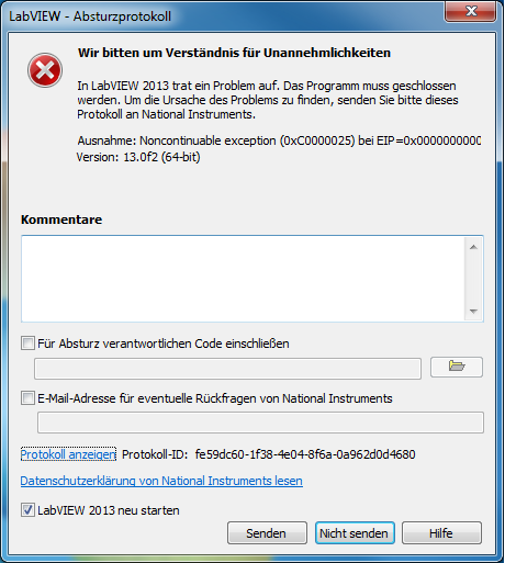 2013 ist schon wieder gestorben. Wenn ich mein Projekt damit öffne, schmiert mir LabVIEW ab.