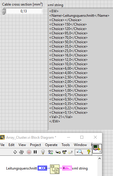 Ich muss den Inhalt der Leitungsquerschnitte aller Arrayelemente also aller Varianten abspeichern.