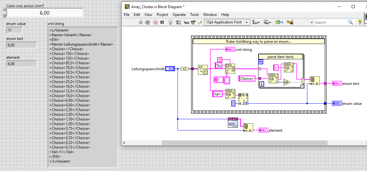 Ein Enum sollte IMMER typdefiniert sein: zieh dir einfach eine weitere Instanz dieses Enums in dein VI und hole dir dort ALLE Item-Strings über eine einzige Property. Dann reduziert sich dein Aufwand auf ein simples IndexArray: