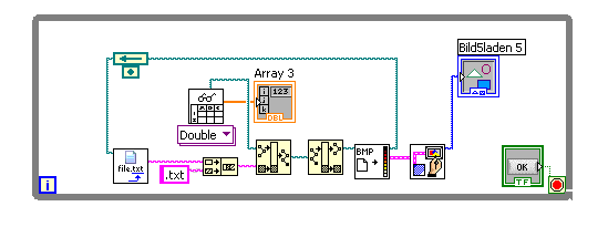 ich schon, wieder, Sad , nachdem die Auslese wunderbar geklappt hat, hab ich jetzt versucht die Daten wieder einzulesen, also das Bild mit LabVIEW öffnen und automatisch soll die .txt Datei mit dem gleichen Namen wieder in ein Array eingelesen werden. Aber irgendwie funzt das nicht, ich kann zwar das Bild öffnen, aber die Daten werden nicht zurückgelesen, ich häng mal das vi als png datei an, vielleicht hat ja nochmal jemand eine idee.