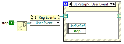2. In der Event Struktur muss ich abfragen woher das Event kommt (von Stop oder Start; das kriege ich aus dem Label Text raus über die Control Referenz). Wie spielen da die User Events rein? Bei denen gibts ja kein Control und damit vermutlich keine Control-Referenz... Oder kriegen die bei den dynamischen Events einfach einen eigenen Rahmen? Arbeite das erste mal mit den dynamischen Events... Kanns auch erst nachher rausprobieren, falls die Lösung offensichtlich seht es mir bitte nach.