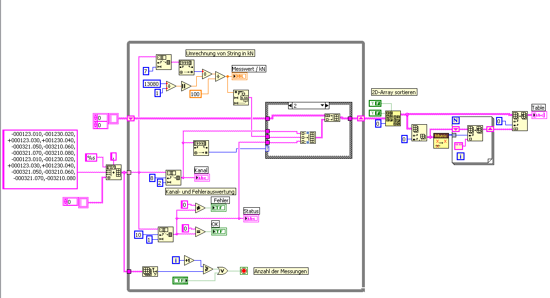 Ich habe an einen PC einen Messverstärker angeschlossen und möchte dessen Ausgabesignal tabellarisch und graphisch darstellen. Ich habe es geschafft, das Signal so zu zerlegen, dass ich alle relevanten Daten gesondert herausbekomme.