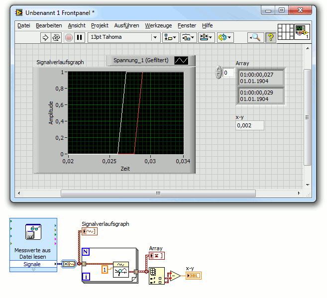 In meinem Beispiel also zwischen 1,002000 s und 1,034000 s Sekunden (Also 32 ms phasenverschoben) die Werte davor sind nicht verwendbar.