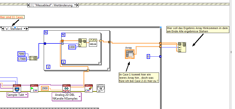 Hey nach deiner Grundlagenkritik habe ich mich dazu nochmal belesen und peile jetzt wo mein Fehler lag ^^. Habe es jetzt hinbekommen und erhalte ein super 1d array so wie ich es haben mag =). Dies lässt sich auch super in die Zeile meines Ergebnis Arrays mit hilfe von Replace Array Subset einfügen , nur hab eich mich nen bissel vertan was das aus den verschiedenen Cases in das Ergebnis Array schreiben betrifft ....Das funktioniert nicht wie ich es mir vorgestellt habe und zwar deshlab: