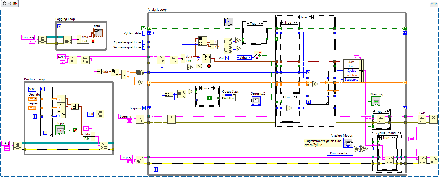 Das VI habe ich in Producer-Consumer-Struktur über mehrere Queues und Melder aufgebaut: