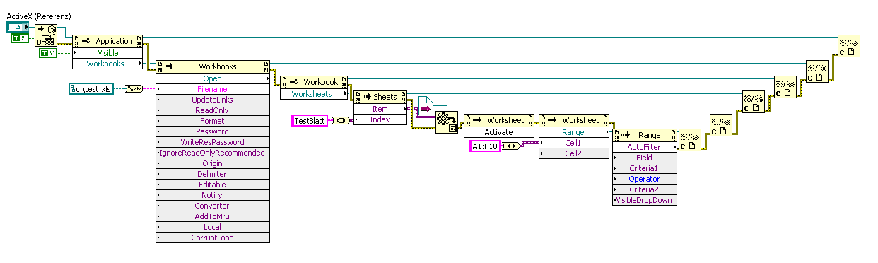 Mangels Office kann ich dir nicht mit einem VI dienen aber evtl. hilft dir die Beschreibung aus der MSDN weiter. Ist zwar nicht explizit die Beschreibung für ActiveX aber enthält die selben Parameter.