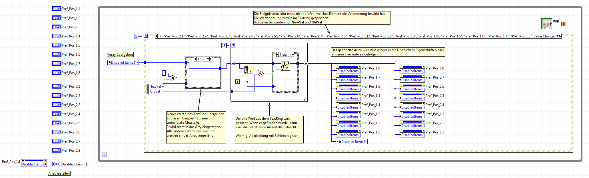 Nun möchte ich in allen TextRing Elementen ( 2x8 Stck. ) die bereits vergebene Position ausblenden.