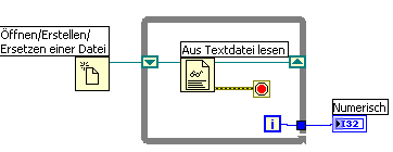 2.) Die am Ausgang des VI "Aus Textdatei lesen" anliegenden Zeilen auslesen und an einen Index-Ausgang der Schleife legen. Dort Array-Anzeige anschließen. Was für Zeilentexte werden da bei 100 Durchläufen ausgelesen, wenn die Datei doch nur 3 Zeilen hat?