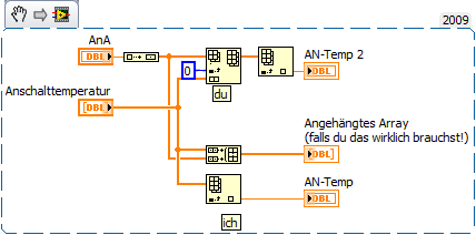 - du liest ein Array aus (Anschalttemperatur, wahrscheinlich nur ein einziges Element im Array) und fügst dieses an der Position 0 ein: dies ist nichts weiter als ein Voranstellen und kann ( oder sollte - meiner Meinung nach) mit BuildArray erledigt werden...