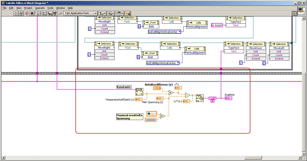 fürchte ich habe mal wieder ein Problem mit einem FeedbackNode. Ich bekomme bei der Berechnung (siehe Bild) nicht immer ein Ergebnis angezeigt, könnte das am FeedbackNode liegen oder dass die Berechnug quasi parallel läuft? Mit dieser VI wird eine bestehende Tabelle gefüllt (in einem Messprotokoll), allerdings meistens ohne ein Ergebnis dieser Berechung :-(.