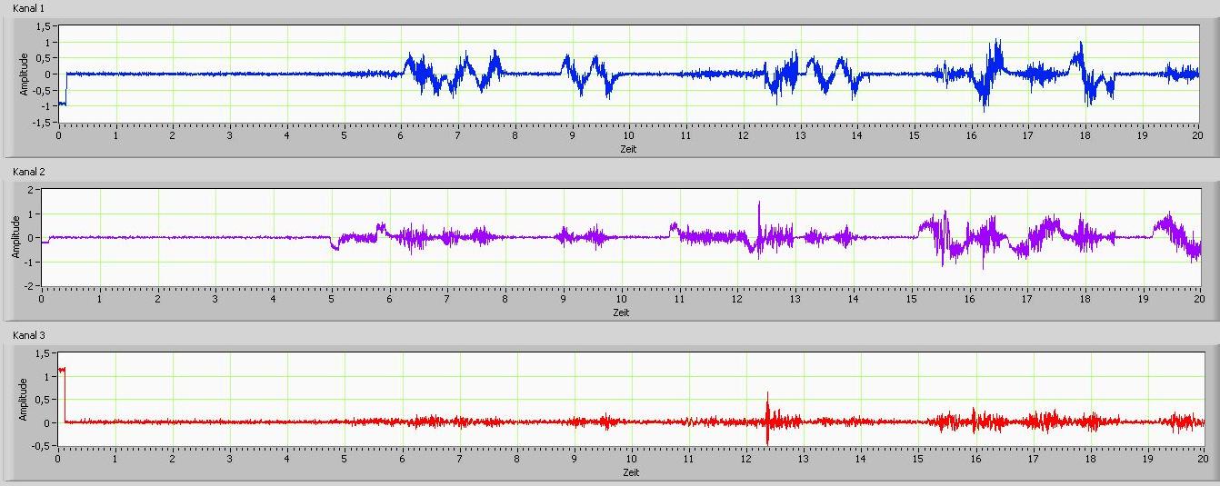 Aber ich denke, es ist schwer zu realisieren, denn ich müsste ja genau wissen wann der Sensor im Ruhezustand ist. Gerade durch die Integration möchte ich unter anderem wissen, wann die Geschwindigkeit konstant ist. Natürlich könnte man sagen, schau auf den Graph, wenn man im v-Diagramm eine Gerade hat, ist die Geschwindigkeit konstant. Ich glaube es ist nicht ohne weiteres möglich, durch den Sensor und Integratoren, die bei LabVIEW mitgelieft sind, genau eine abgefahrene Strecke zu ermitteln.