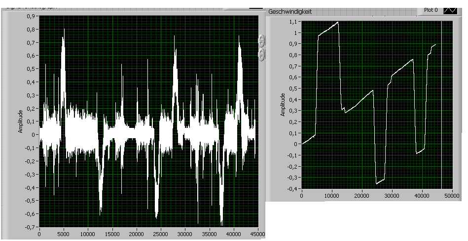 Im Bild ist links der Beschleunigungsverlauf, rechts der GEschwindigkeitsverlauf dargestellt.