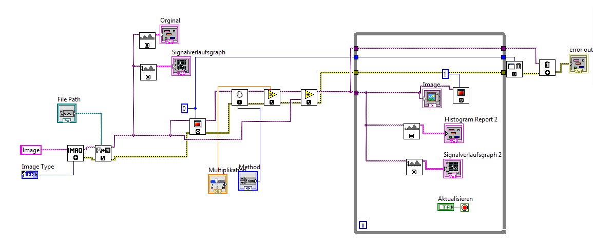 ich muss bei einem Bild per Kantenfilter die Kanten raus filtern, dann per Multiplikation die Grauwerte dehnen und dann wieder zum Bild dazu addieren. Mein Problem ist die Addition der Bilder funktioniert nicht. Nach dem ich die Kanten gefiltert und gedehnt habe, erkennt man im Histograph das er die Bilder nicht addiert ( auch im Bild selbst). Es müssten ja die orginalen Grauwerte zu sehen sein.(z.B. zwischen 120 und 140 müssten es 20 Werte sein)