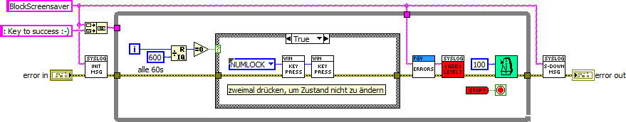 ' schrieb:Die LVUTIL32 library auf www.ni.com hat eine winsys.llb Library die genau diese Kontrolle zulässt. Allerdings gibt es ein kleines mögliches Problem. Die Windows Policies müssen für den aktuellen Benützer die Änderung des Bildschirmschoners zulassen sonst funktioniert dies auch nicht.