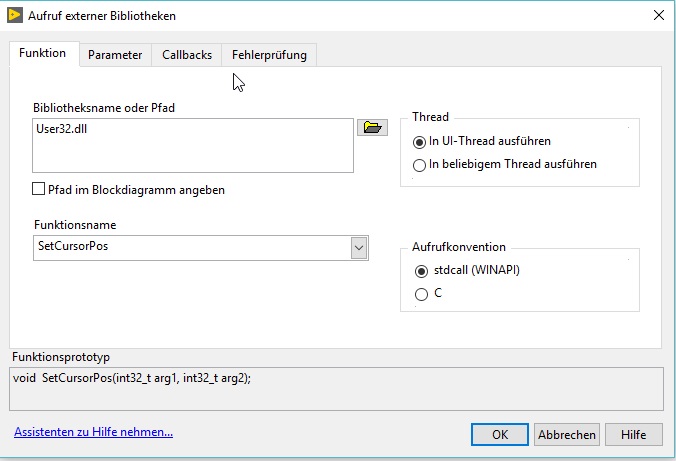 Für Leute, für die es zu schwer ist eine DLL in LV aufzurufen gibt es irgendwo eine freie Bibliothek für LV. Diese habe ich bei mir zu Hause und kann hier heute abend posten. Oder such diese selber im Google.