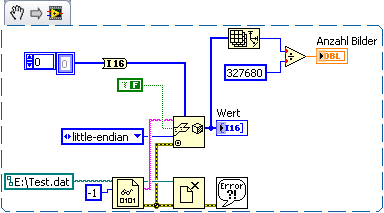 Ich möchte ein Messdatei einlesen. Die Daten in der Messdatei sind im Binärformat gespeichert. In der Datei werden Bilder (640*512) gespeichert, d.h. jedes Pixel. Jeder Wert entspricht 2 Byte. Ein Bild ergibt also 640*512=327680 Pixel. Die Pixelwerte möchte ich in ein Array schreiben.