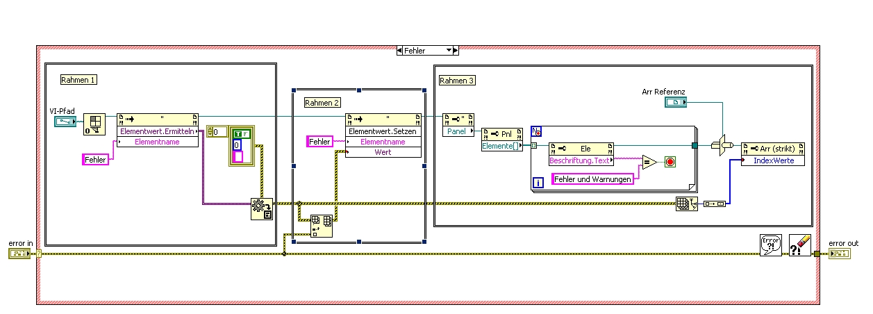 Rahmen 1 dient dazu, das FehlerArray aus dem HauptVI einzulesen.