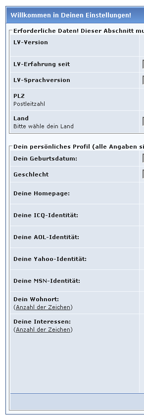 Wie du ja immer links neben meinen Beiträgen sehen kannst, habe ich die Einstellungen schon zu Beginn ausgefüllt.