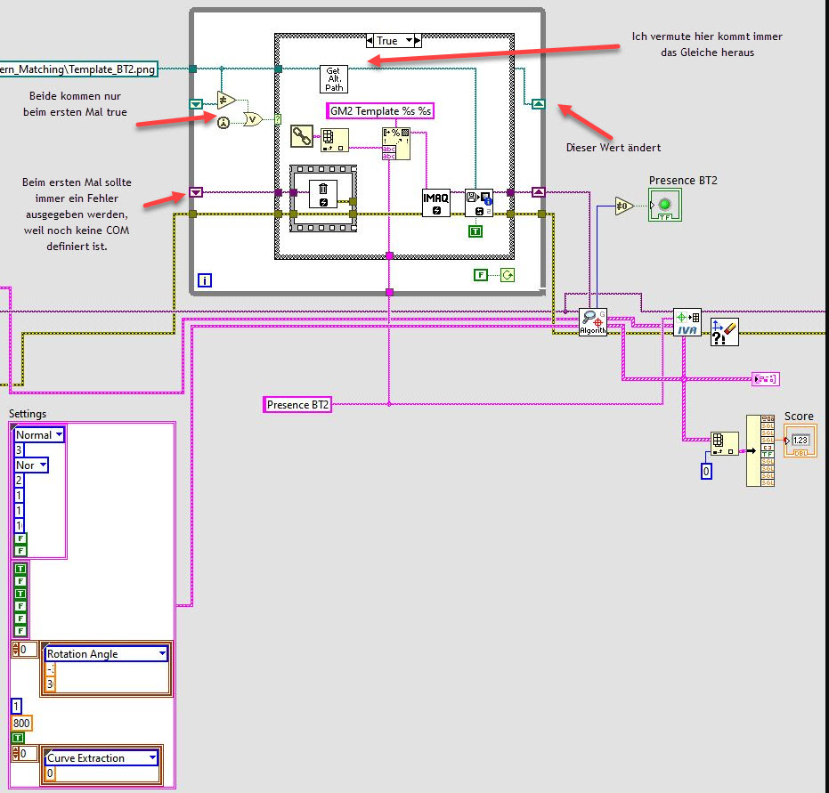 Habe mir das Skript in ein VI konvertiert und ein paar Darstellung noch hinzugefügt (Anzahl detektierte Muttern etc.) und unter anderem befindet sich dort das von mir verarbeitete Bild (War nach der Konvertierung schon da). Nun fände ich es cool, wenn dort die Boundary Box der gefundenen Matches mit angezeigt wird, allerdings werde ich da aus Google und Testerei der letzten Stunden nicht schlau...