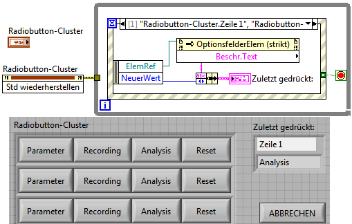 Spalte: Es sieht so aus, als ob nur des Drücken eines Knopfes einen Sinn macht, nicht aber das gleichzeitige Drücken mehrerer. Daraus resultierende Änderung: Radio Buttons statt Cluster of Boolean.