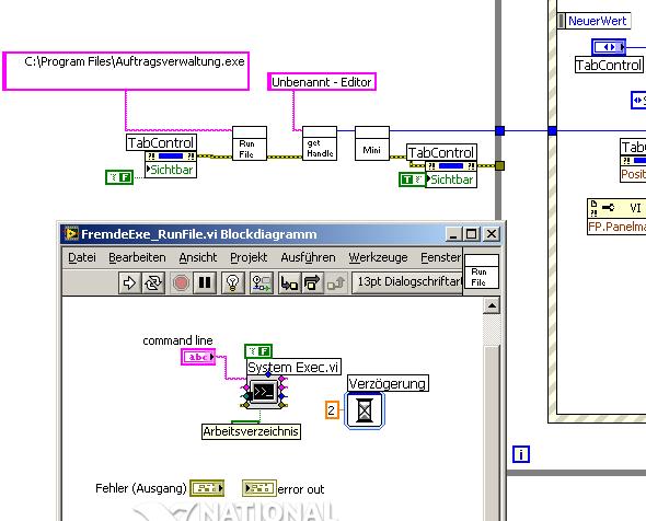 Aber leider wird das Programm nun sofort bei Programmstart des LV-Progs. geöffnet und als eigenes Fester über die LV Anwendung geblendet. Ich möchte es so haben, dass es nur eingeblendet wird wenn man einen bestimmten Reiter in der Registerkarte anwählt und dann wieder ausgeblendet wird wenn man einen anderen Reiter auswählt.