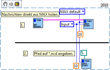 ich bin gerade dabei CAN-Daten zu erfassen. Jedoch scheitere ich an der Konfiguration der VIs. Ich möchte CAN Daten erfassen von einer bestimmten ID. Dazu habe ich die CAN Channel API gewählt. Die Beispiele von NI helfen mir leider nicht wirklich weiter, da die Einstellungen aus einer Konfigurationsdatei kommen. Hab auch schon versucht über den MAX Explorer diese Datei zu erzeugen jedoch hats nicht funktioniert. Letzt endlich gibt es ja die Möglichkeit die Messages auch programmatisch zu erstellen. Im Anhang habe ich ein ganz stupides VI. Vielleicht kann mir jemand helfen und sagen was falsch ist. Mittels der VIs aus der Palette Frame API funktioniert alles. Jedoch möchte ich die Channel API testen. Ich habe ein CAN Spy Gerät welches mit einer bestimmten ID zyklisch Daten sendet mit einer Baudrate von 250kB.