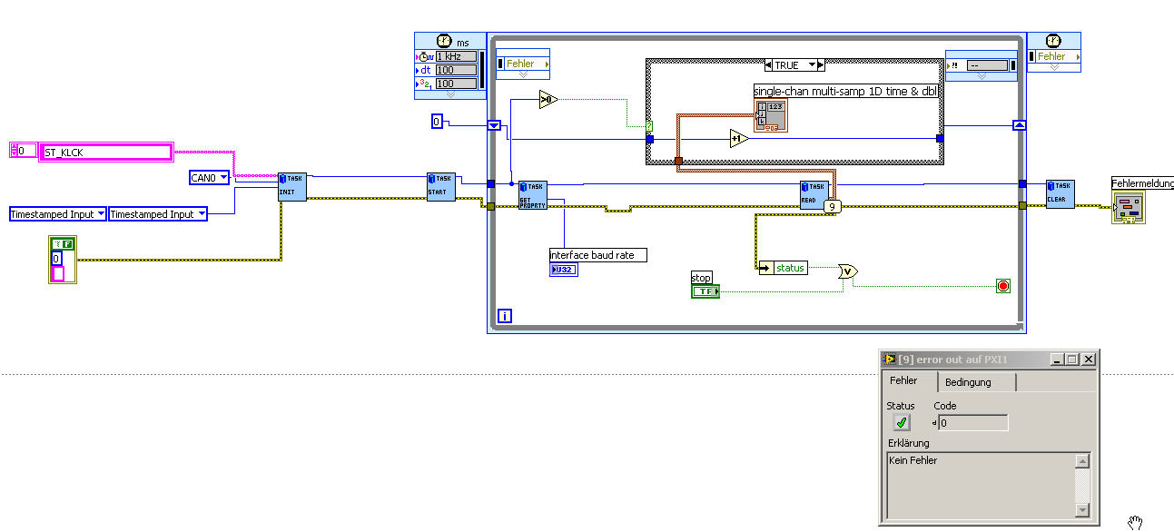 habe eine PXI mit CAN-Karte, baudrate stimmt (500kbaud), in der MAX sind die Botsschaften mit samt Messages eingelesen und zum RT-System gesendet worden.
