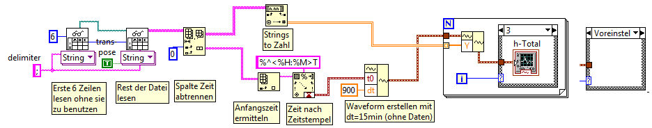 Ich bin am verzweifeln. Das ist doch wohl etwas zu komplex für meine Unerfahrenheit. Ich bekomme die CSV's nicht wirklich ausgelesen und dann stellt sich ja noch die Frage, wie ich in LV beibringe, jeden Tag eine neue Datei zu lesen.
