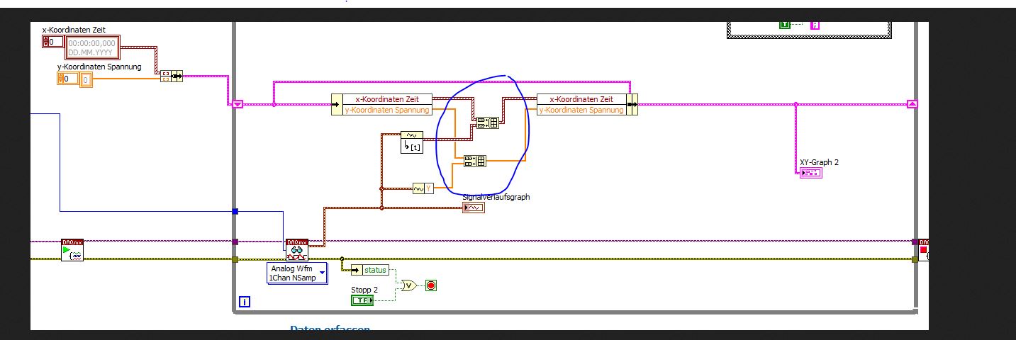 Hallo Jens, jetzt habe ich ein Signal im Diagramm ! Wenn ich aber auf speichern drücke wird das Signal nicht gespeichert. Deswegen habe ich versucht das Signal mit der csv-speichern-Funktion zu verbinden.