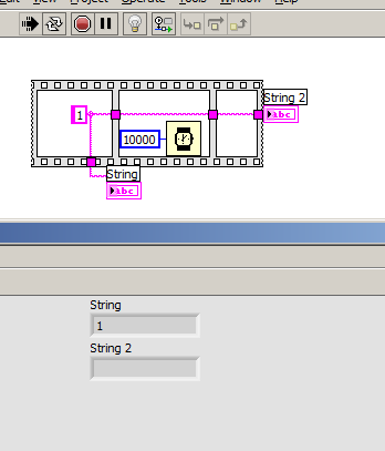 Man beachte, das VI läuft gerade. String ist schon geschrieben, String 2 noch nicht.